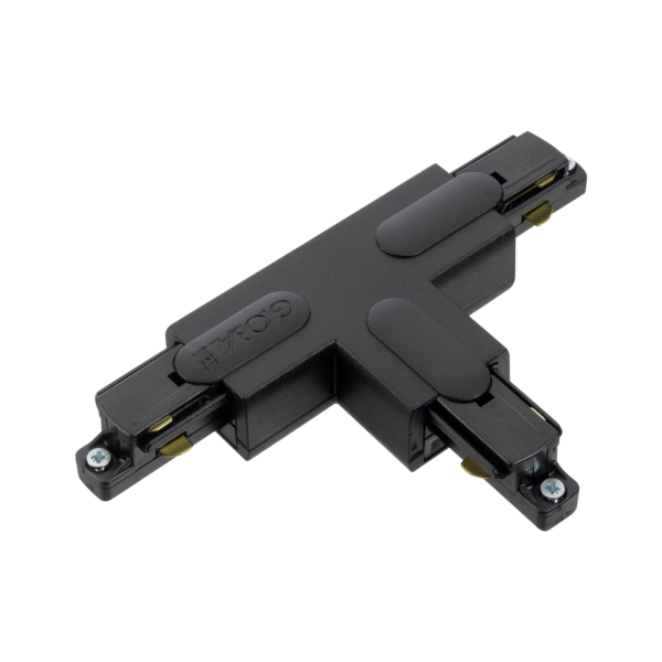 Global Base 1-fase strømforsyning. Brukes til å koble spenning (230V) til enden av skinnen. Tilgjengelig i to varianter (GB11 & GB12) avhengig av hvilken side av skinnen strømforsyningen skal kobles til. Når du kobler til en rett skinnelengde, er typen strømforsyning ikke avgjørende ettersom skinnen kan snus om nødvendig. Imidlertid anbefaler vi vanligvis å bruke den venstre tilkoblingen (GB11), da det gir bedre utnyttelse av skinnens bredde. Dette skyldes at spotlighten kun kan monteres fra én side av skinnen. Ved å montere strømforsyning på venstre side får du bedre utnyttelsen av skinnens bredde.