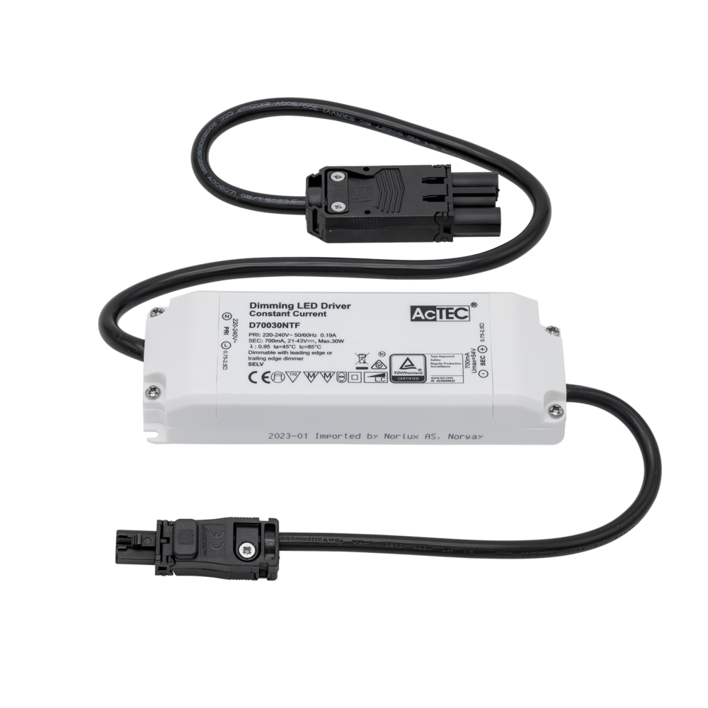 30W fasekutt dimmer med 18i3 hann tilkobling på primær side.