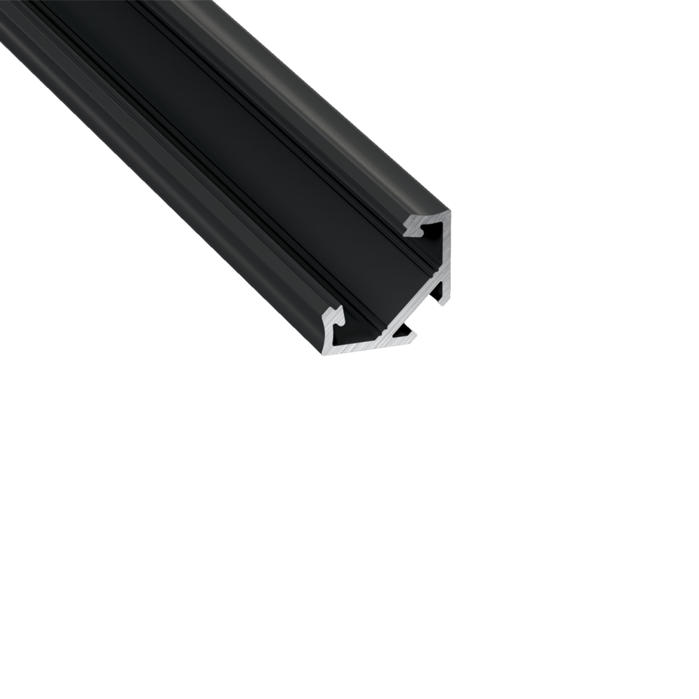 Type C aluminiumsprofil med 45° vinkel gir et moderne og minimalistisk uttrykk. Perfekt for elegante overganger mellom to vinkelrette flater, der lyset skal rettes diagonalt. Ideell for designløsninger som krever både funksjon og stil.